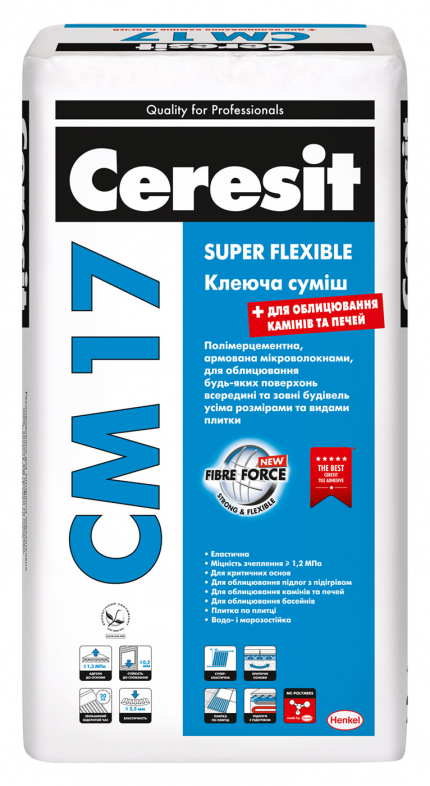 Клей для плитки эластичный Церезит СМ 17 (Ceresit СМ 17) используется для внутренних и внешних строительных работ. Эта серия клеевой смеси разработана специально для облицовки поверхностей, которые характеризуются высокой плотностью. Чаще всего его совмещают с бетоном, плиткой с натурального и литого камня, стеклянной плиткой и даже с асбошифером.