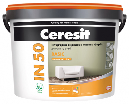 Краска интерьерная акриловая матовая CERESIT IN-50 (15 кг/10 л)