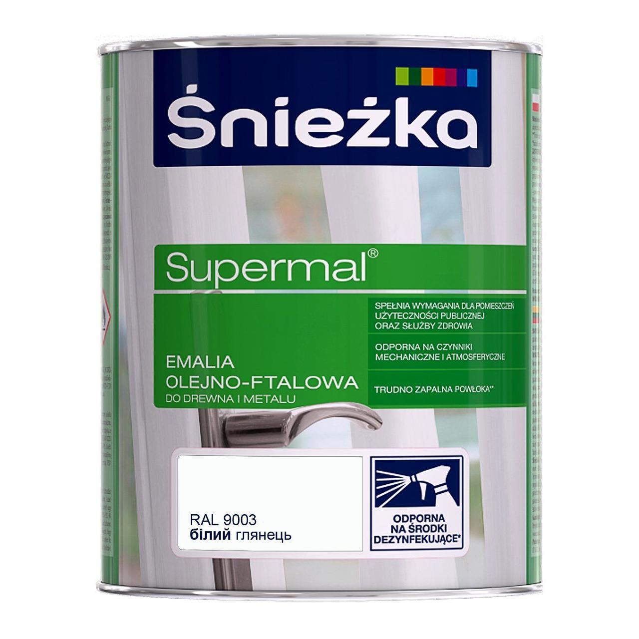Śnieżka Supermal Олійно-Фталева емаль - ДЛЯ ДЕРЕВИНИ ТА МЕТАЛУ- СТІЙКА ДО ДЕЗЕНФІКУЮЧИХ ЗАСОБІВ