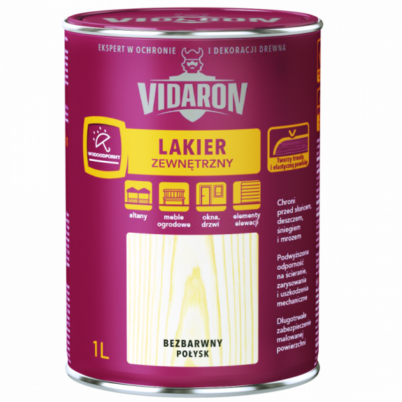 Внешний лак долгое время защищает окрашенную поверхность и создает место, гибкое и водонепроницаемое покрытие. Он характеризуется повышенной стойкостью к стиранию, царапинам, механическим повреждениям и защищает от солнца, дождя, снега и мороза. Основные свойства изделия